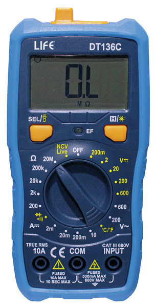 Multimetro Tester Digitale T-RMS, Max 10A / 600V, con Buzzer, e Temperatura - 45.DT136C