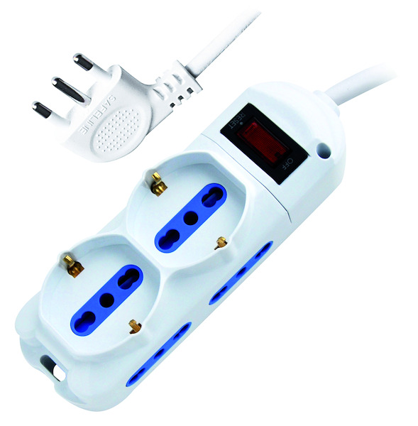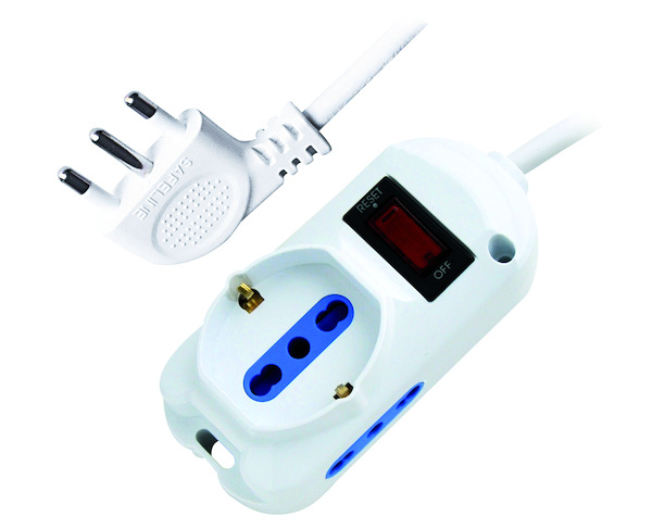 MULTIPRESA 1PR.SCHUKO/BIPASSO+2PR.BIVALENTI-SP.10A(2P+T) 90°+INTER. Protezione da Sovraccarico,2500W - 38.1030231P10