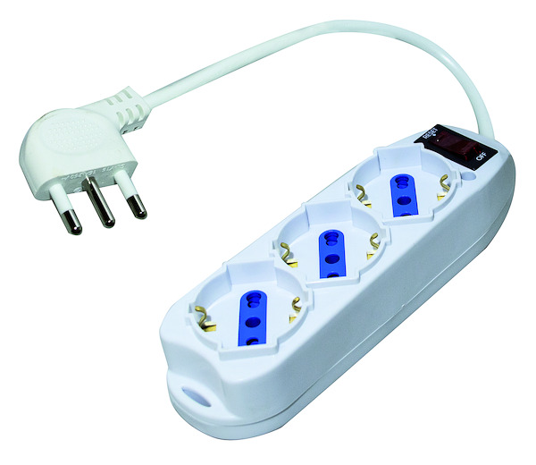 MULTIPRESA 3PR. SCHUKO/BIPASSO - SP.16A 90° + INTER. con Protezione da Sovraccarico, 3500W - 38.1030203P